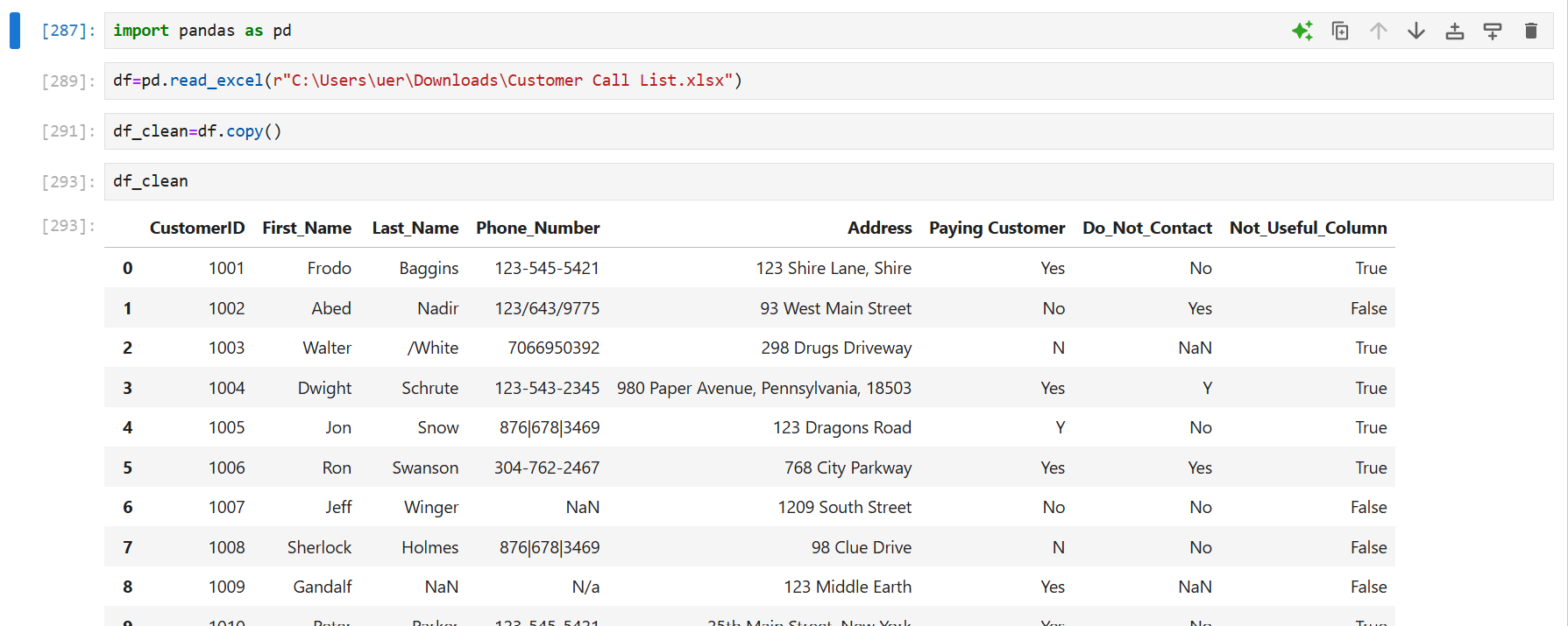 Used Python and Pandas to clean and analyze customer data, improving data quality by 95% and enabling accurate business insights.